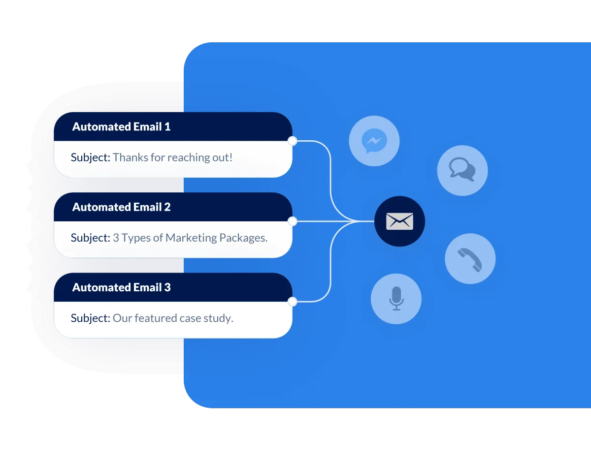 Build custom nurture campaigns that send text messages, emails, voicemails, and even Facebook messages to convert leads automatically.