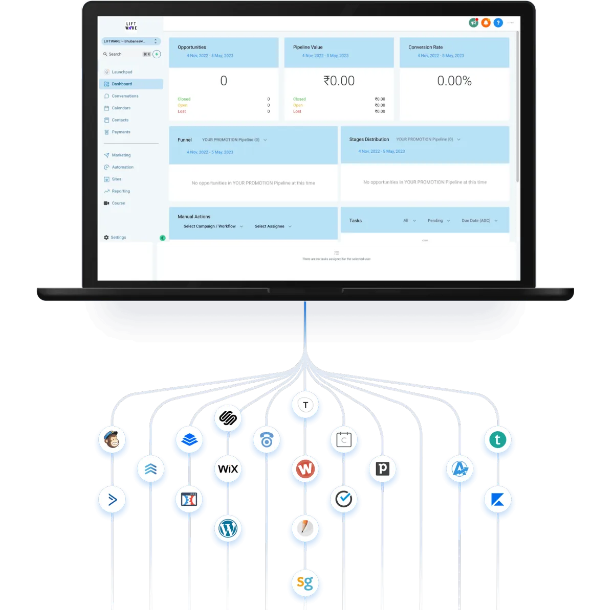 As a coach, freelancer or agency owner, you know how time-consuming and error-prone manual business operations can be. But with LIFTWARE's CRM solution, you can finally streamline your client appointments, sales funnels, and workflows in just a few clicks, freeing up your time to focus on growing your business and serving your clients. Plus, you will get ready made A.I integration which can be activated in less than 10 mins, leading to increased business growth and revenue and saving time. So why wait? Sign up for LIFTWARE today and take your business to the next level!